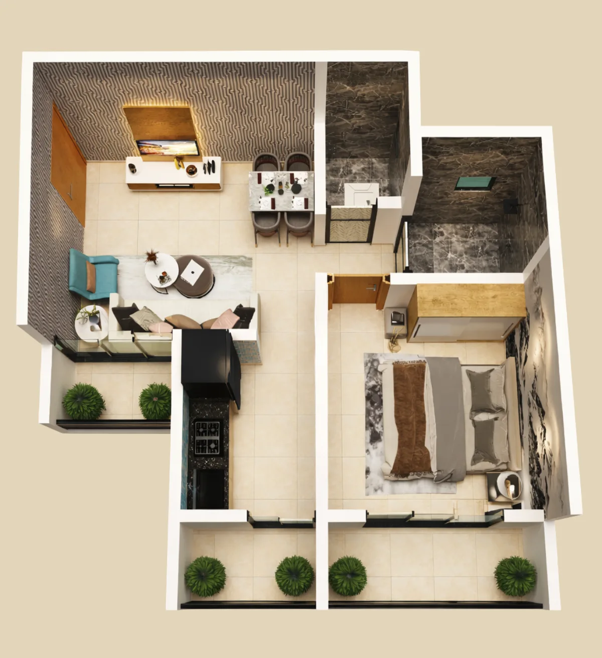 1 BHK with Master Bedroom